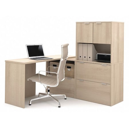 Features include & The desk features a durable 1 inch commercial grade work surface with melamine finish that resist scratches stains and wears. The 20 x 60 work surface sits on a storage unit for great layering effect. The storage unit features two open cubbies and a file drawer with letter/legal filing system. The lateral file has two drawers with letter/legal filing system. The Drawers are mounted on ball-bearing slides for smooth and quiet operation. The hutch features one fix shelf. This desk has a finished back is fully reversible and is covered by a 10 year warranty.. Specifications Warranty: 10 Years Finish: Northern Maple.