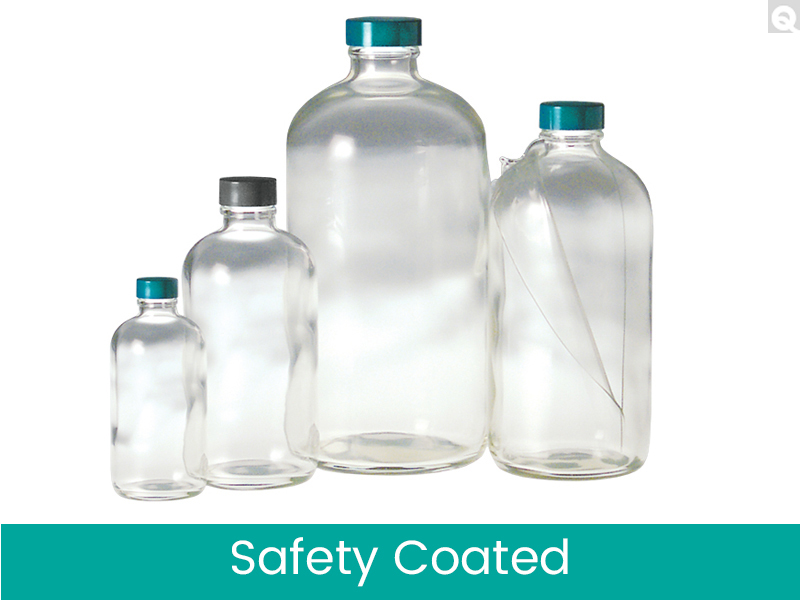 Qorpak Safety Coated Clear Boston Bottles with Phenolic PolyCone Cap - ? Grayline Medical