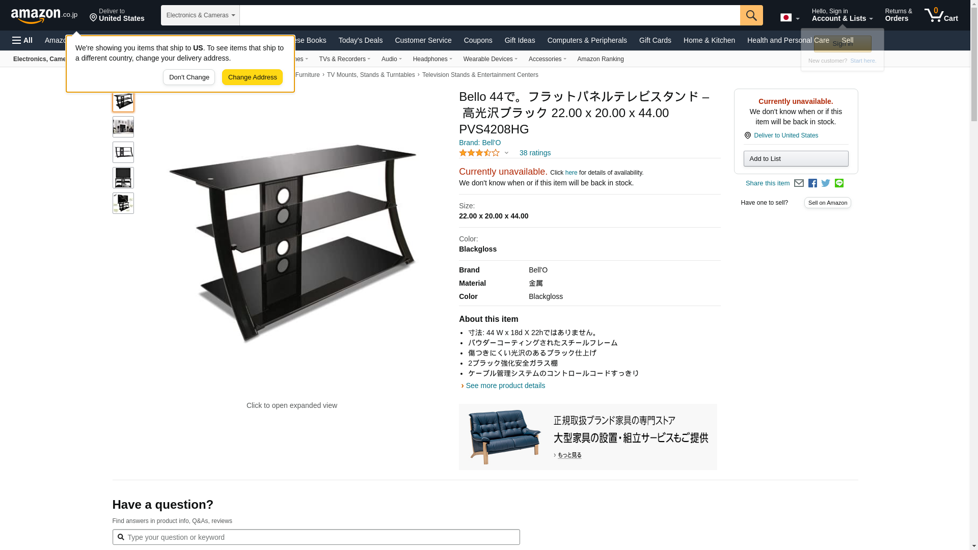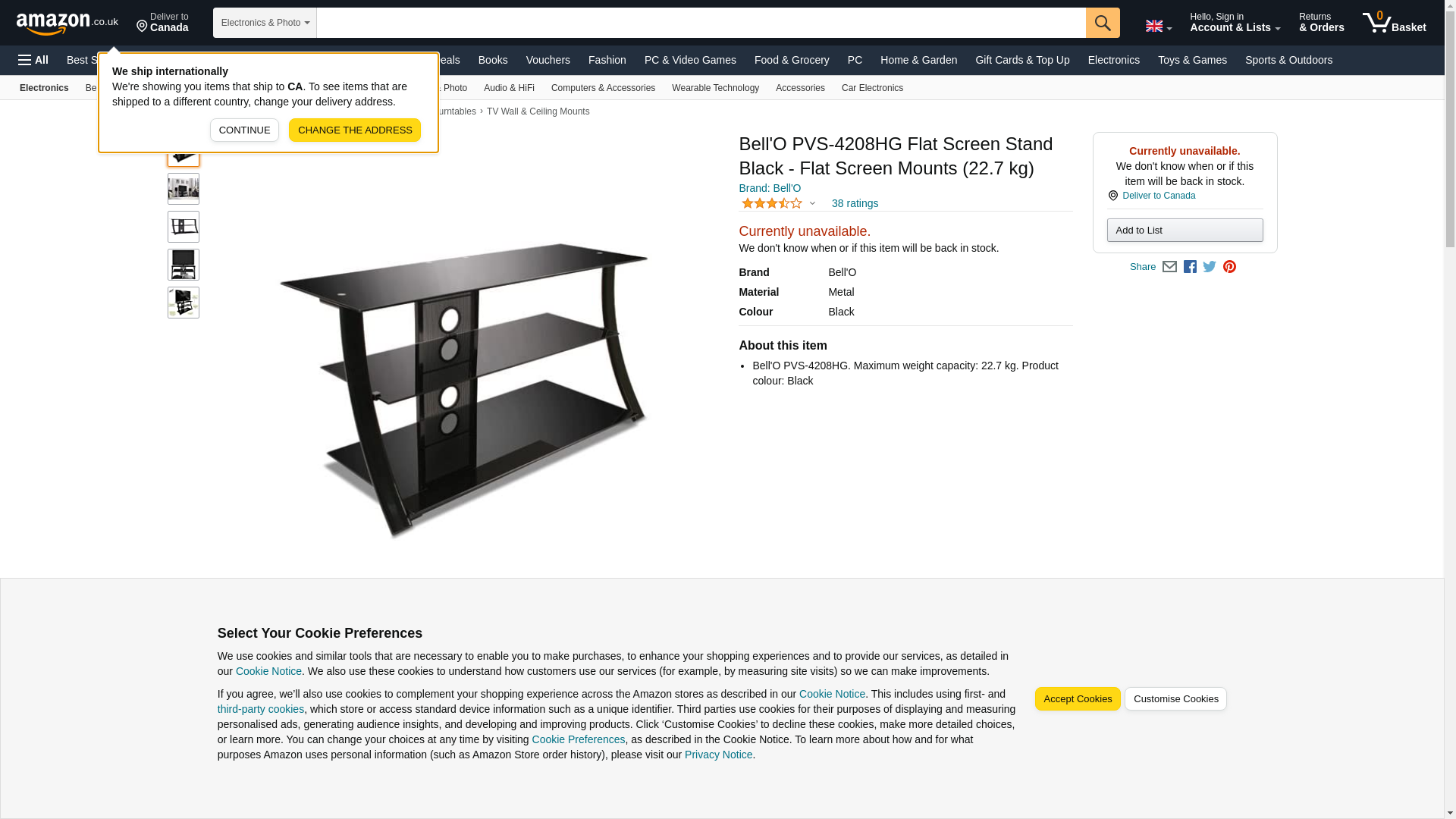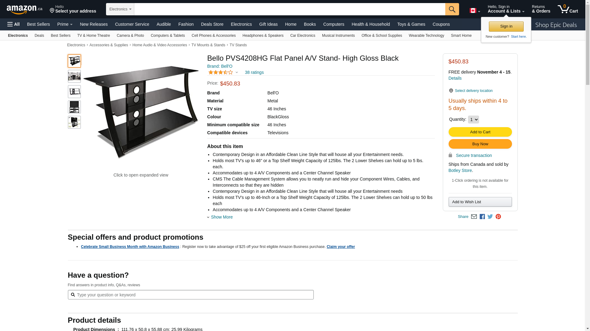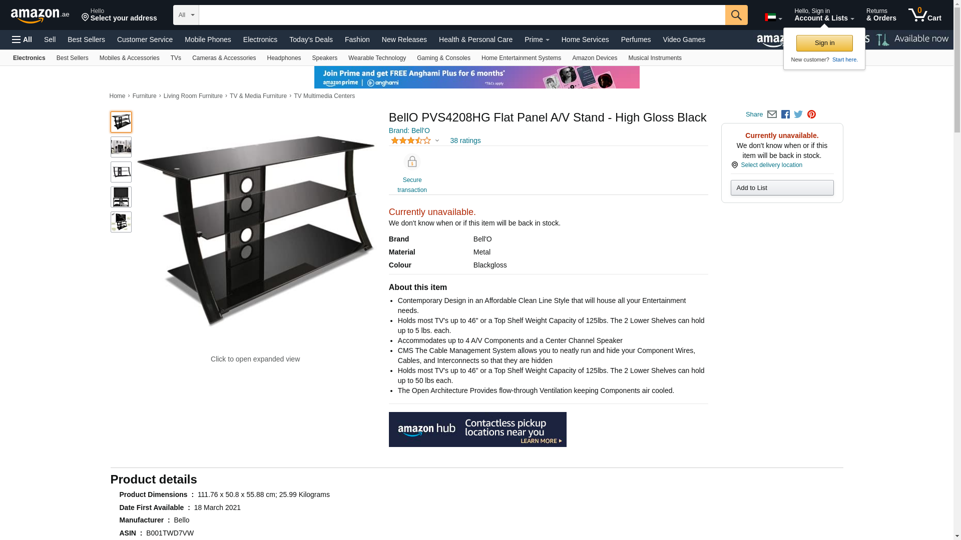 BellO PVS4208HG Flat Panel A/V Stand - High Gloss Black