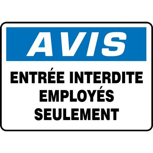 Order FRMADC994VP by Accuform OSHA French Sign "Entree Interdite Employes..." - US Mega Store