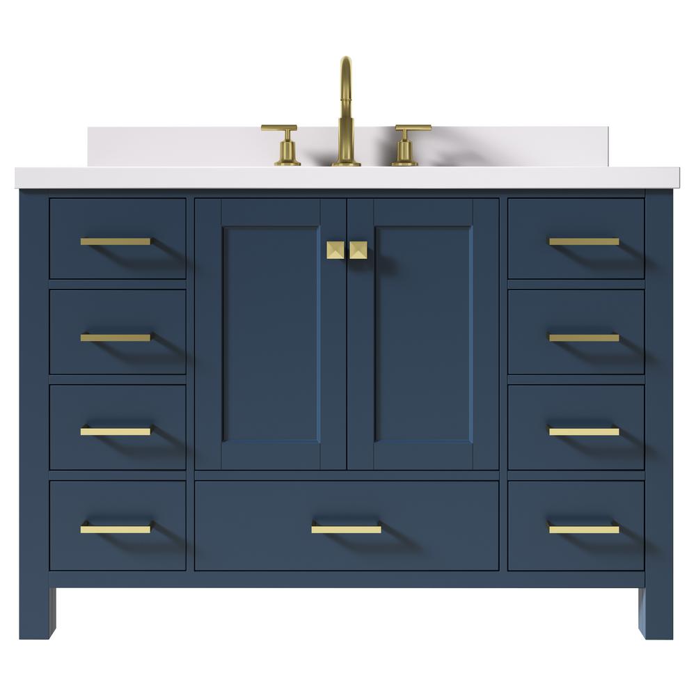 ARIEL A049SWQOVOMNB CAMBRIDGE 49 INCH OVAL SINK VANITY WITH WHITE QUARTZ COUNTERTOP, MIDNIGHT BLUE