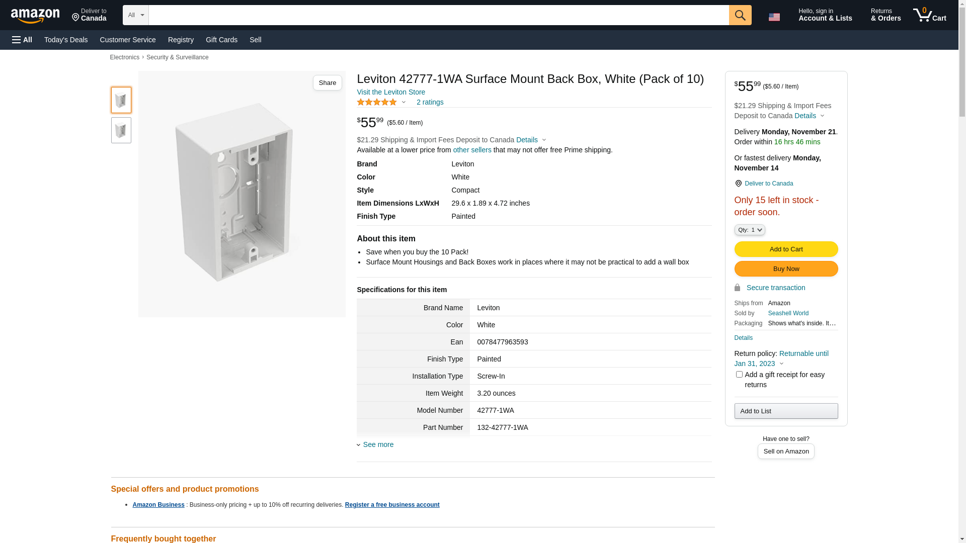 | Feature | LEVITON * SURFACE MOUNT BOX 1 LOT OF 10 * 42777-1WA |