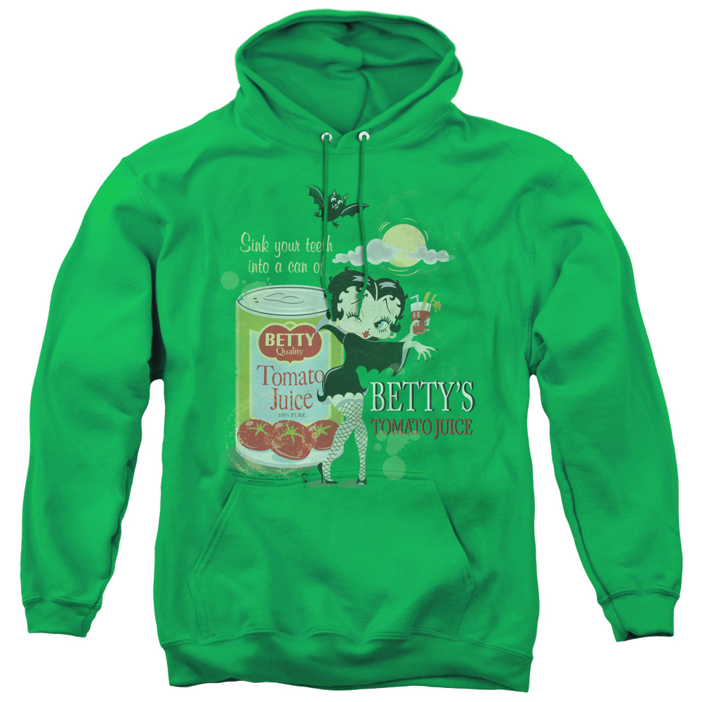 Trevco BB549-AFTH-5 Betty Boop & Vampire Tomato Juice Adult Pull-Over Hoodie, Kelly Green - 2X