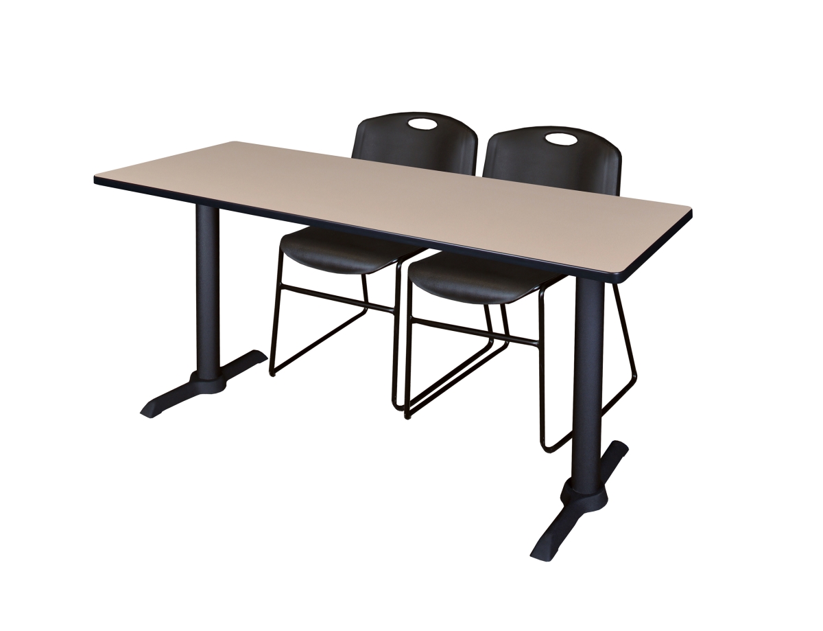 Regency MTRCT6624BE44BK 66 x 24 in. Cain Training Table, Beige & 2 in. Zeng Stack Chairs - Black