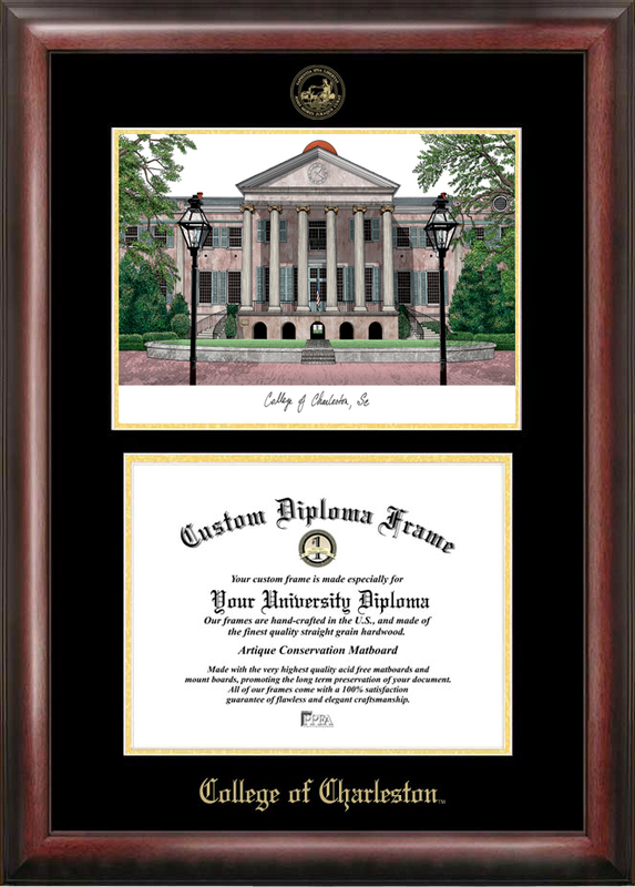 Campus Images SC998LGED College of Charleston Gold embossed diploma frame with Campus Images lithograph