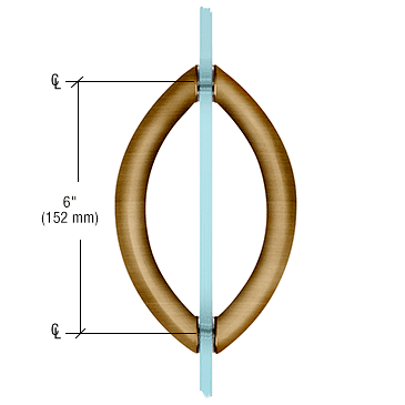 C.R. LAURENCE CSH6X6ABR CRL Antique Brass 6" Crescent Style Back-to-Back Pull Handles Without Metal Washers. The CRL Crescent Style Handle is formed from tubular brass. These Handles do not include metal washers, but plastic washers are included to protect against glass-to-metal contact..