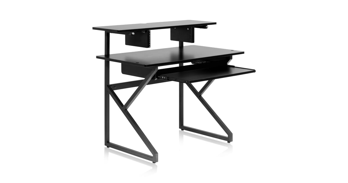 Gator Frameworks Content Creator Series Studio Desk Workstation with (3U) Rack Shelf and Sliding Keyboard Tray; Black Finish (GFW-DESK-MAIN)