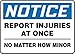 REPORT INJURIES AT ONCE NO MATTER HOW MINOR
