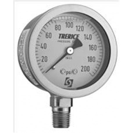 Trerice D83LFSS4002LA30/0 Industrial Gauge, 4" dial, 30" Hg to 0, 1/4" NPT Stainless Steel Connection, Lower Mount, Liquid Filled