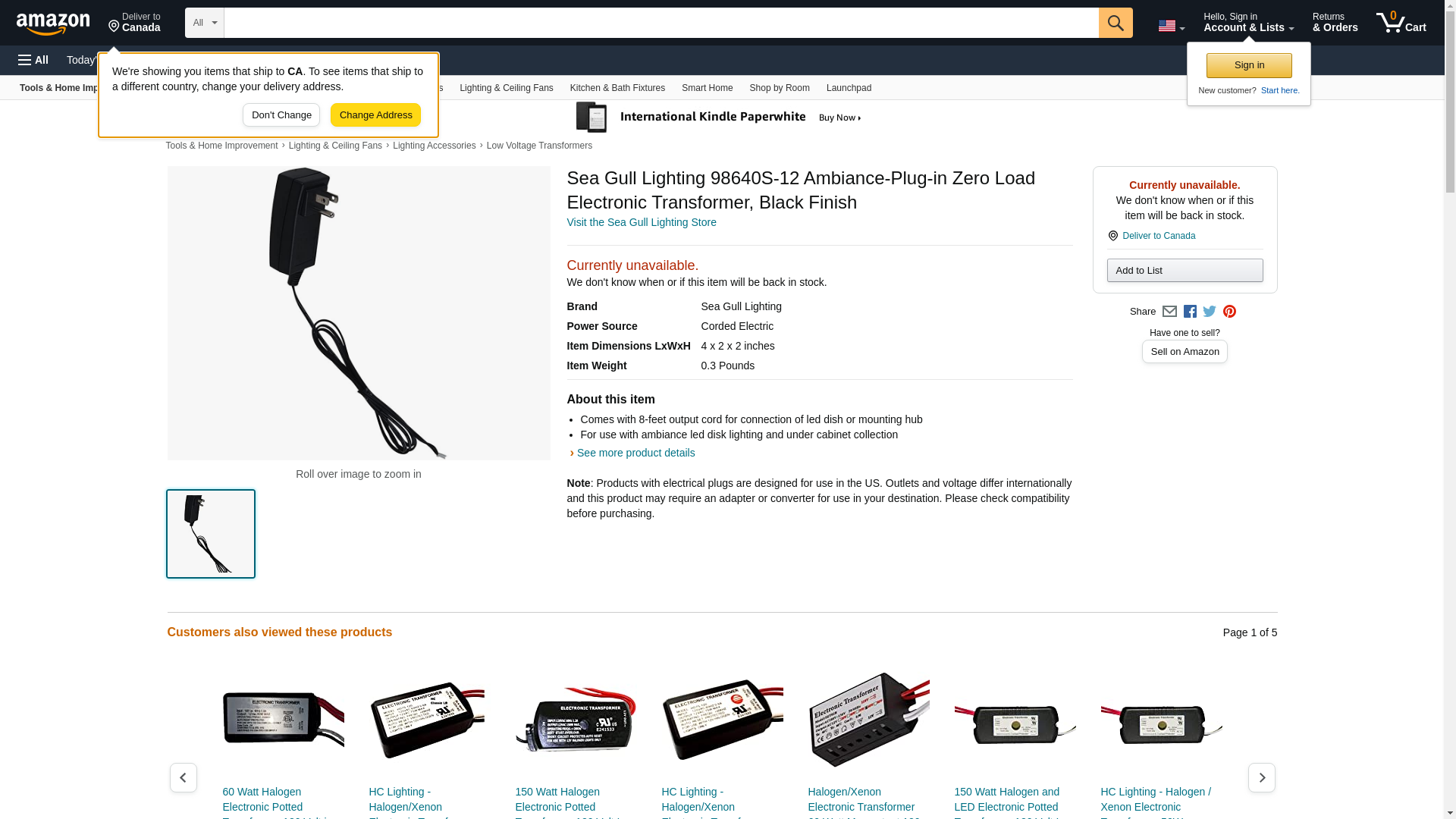 Sea Gull Lighting 98640S-12 Ambiance-Plug-in Zero Load Electronic Transformer, Black Finish