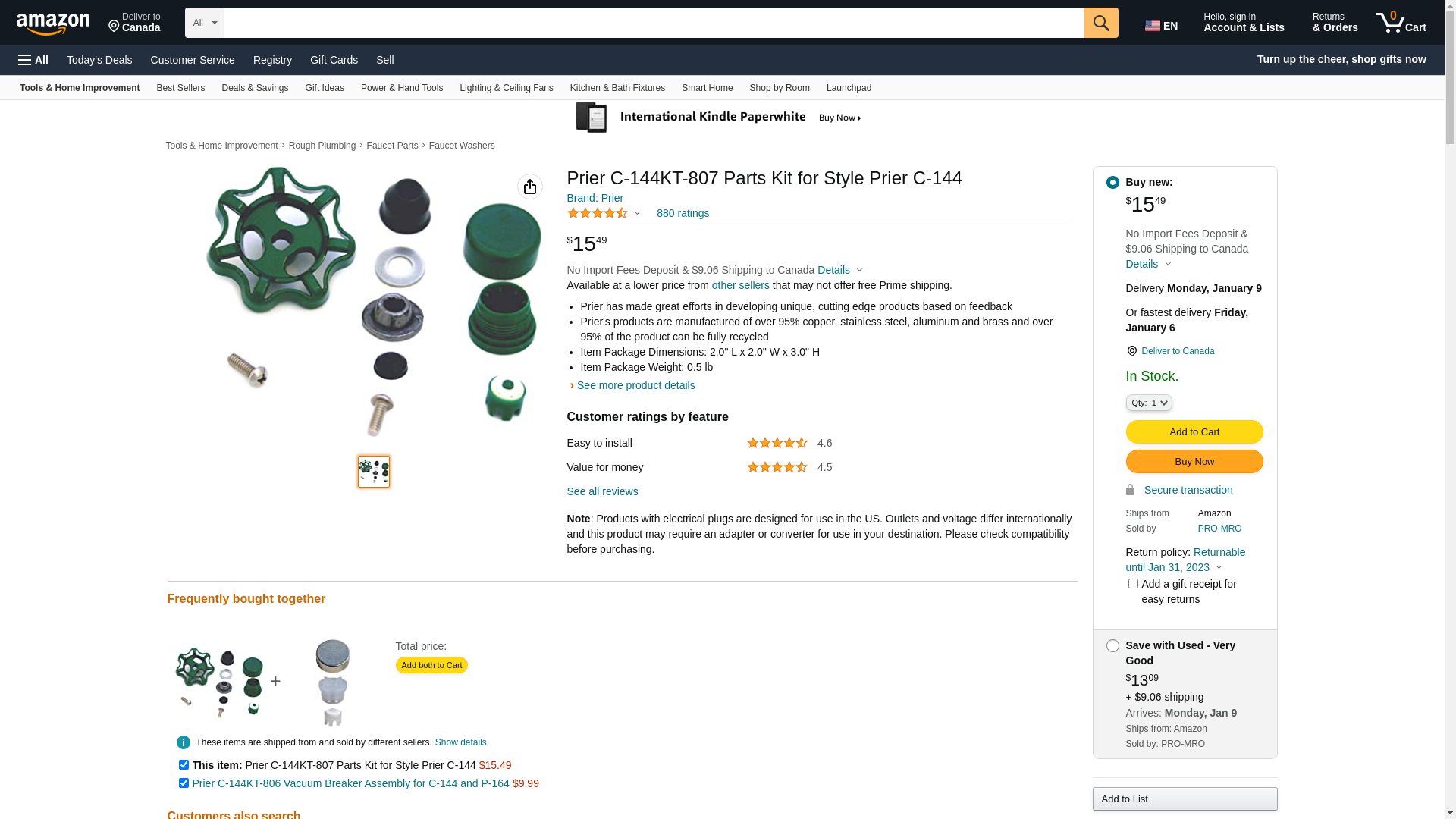 | qualityplumbingsupply.com | C-144KT-807 | 1 | -2 | 1 | 1 @ $11.13 |