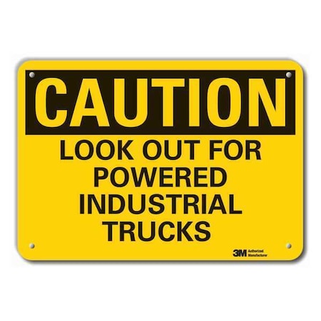 Reflective Lift Truck Traffic Caution Sign, Vertical Rectangle, Number of Printed Sides 1, English, Sign Format Traditional OSHA, Sign Legend Look Out For Powered Industrial Trucks, Sign Legend Background Color Yellow, Sign Legend Style Text