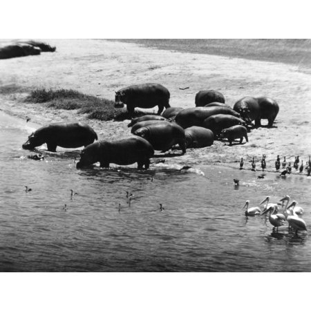 Congo Hippopotamus Na Herd Of Hippopotami In Belgian Congo 1959 Rolled Canvas Art - (24 x 36)