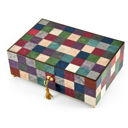 Gorgeous 30 Note Modern Pastel Checkered Sorrento Music Jewelry Box with Lock and Key - Let it go