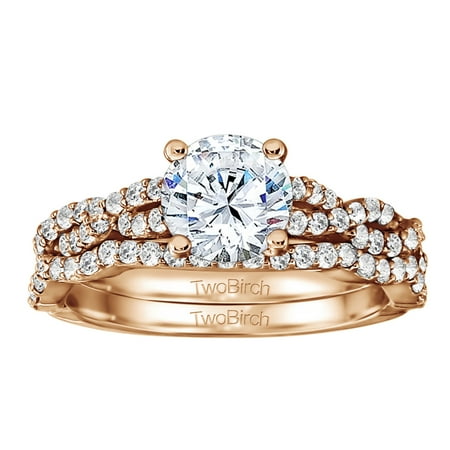<ul> <li>Engagement Ring sets are made to fit together perfectly.</li> <li>The ring is set with 1.75 carats of Round stones Cubic Zirconia</li> <li>This ring is available in 10K Gold, 14k Gold and sterling Silver. Click TwoBirch above to see it in all of its variations.</li> </ul>