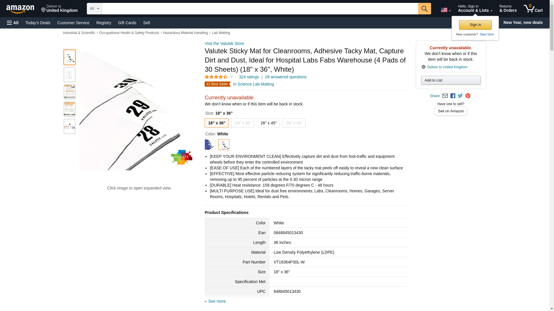 Buy Valutek VT18364P30L-W, NanoTek Cleanroom Sticky Pad Entrance Matting, 18" x 36", White, 4 Mats/Case, sticky mat and related products.