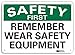 Safety Sign, Vertical Rectangle, Number of Printed Sides 1, English, Sign Format Traditional OSHA, Sign Legend Remember Wear Safety Equipment, Sign Legend Background Color White, Sign Legend Style Text