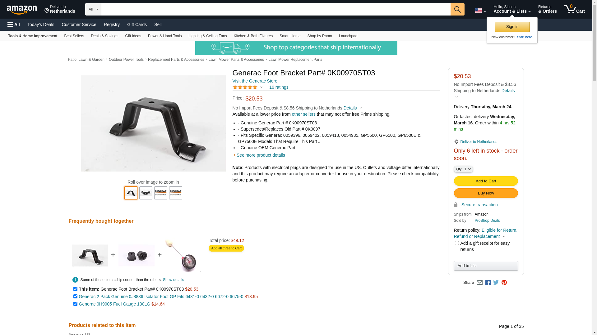 GENERAC 0K00970ST03 Foot Bracket Part#
