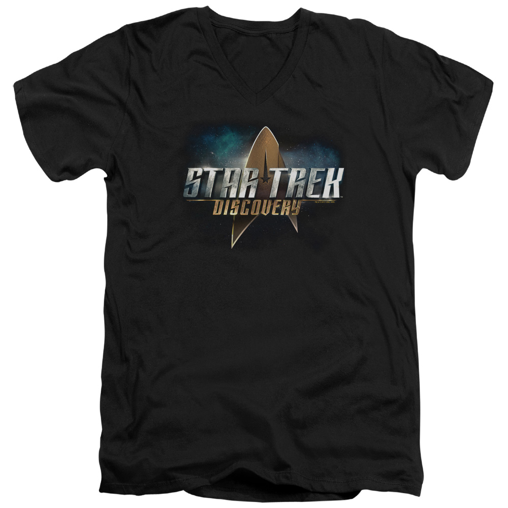 Trevco CBS1906-AV-4 Star Trek Discovery & Discovery Logo Short Sleeve Cotton Adult Slim Fit V-Neck 30-1 T-Shirt, Bla