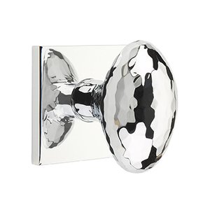 Brass Modern Hardware Collection - Privacy Hammered Egg Door Knob With Square Rose in Polished Chrome by Emtek Hardware - 5210HEUS26-234 | MyKnobs