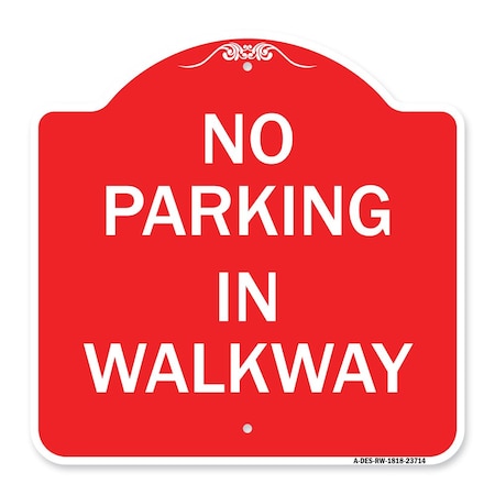 Designer Series Sign-No Parking in Walkway, Red & White Aluminum Architectural Sign