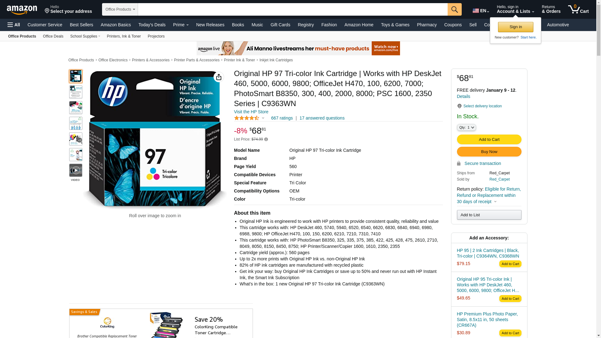 - What's in the box: 1 new Original HP 97 Tri-color Ink Cartridge (C9363WN)