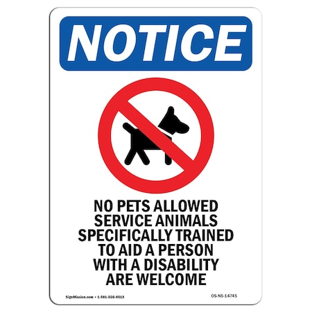 OSHA Notice Sign, No Pets Allowed Service With Symbol, 14in X 10in Rigid Plastic