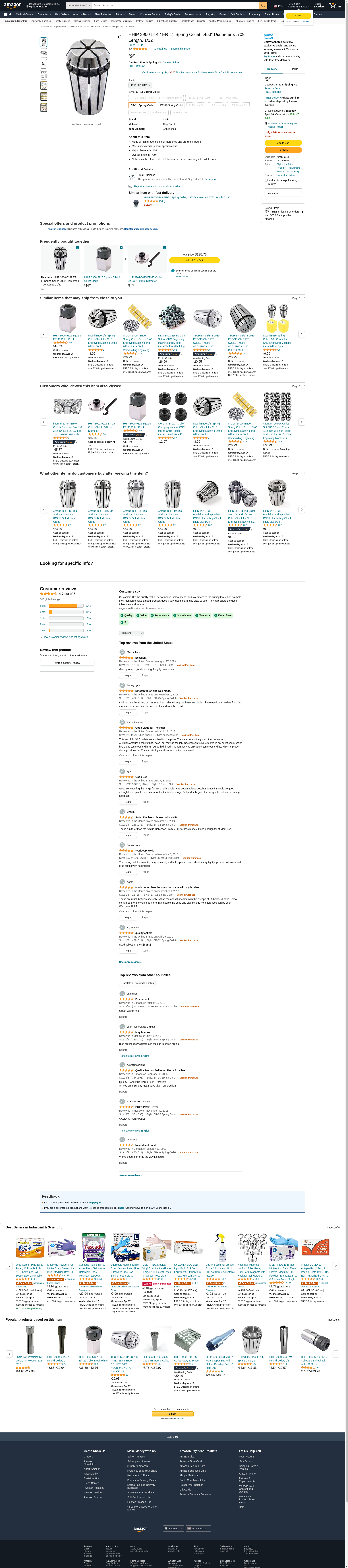 HHIP 3900-5142 ER-11 Spring Collet, .453" Diameter x .709" Length, 1/32"