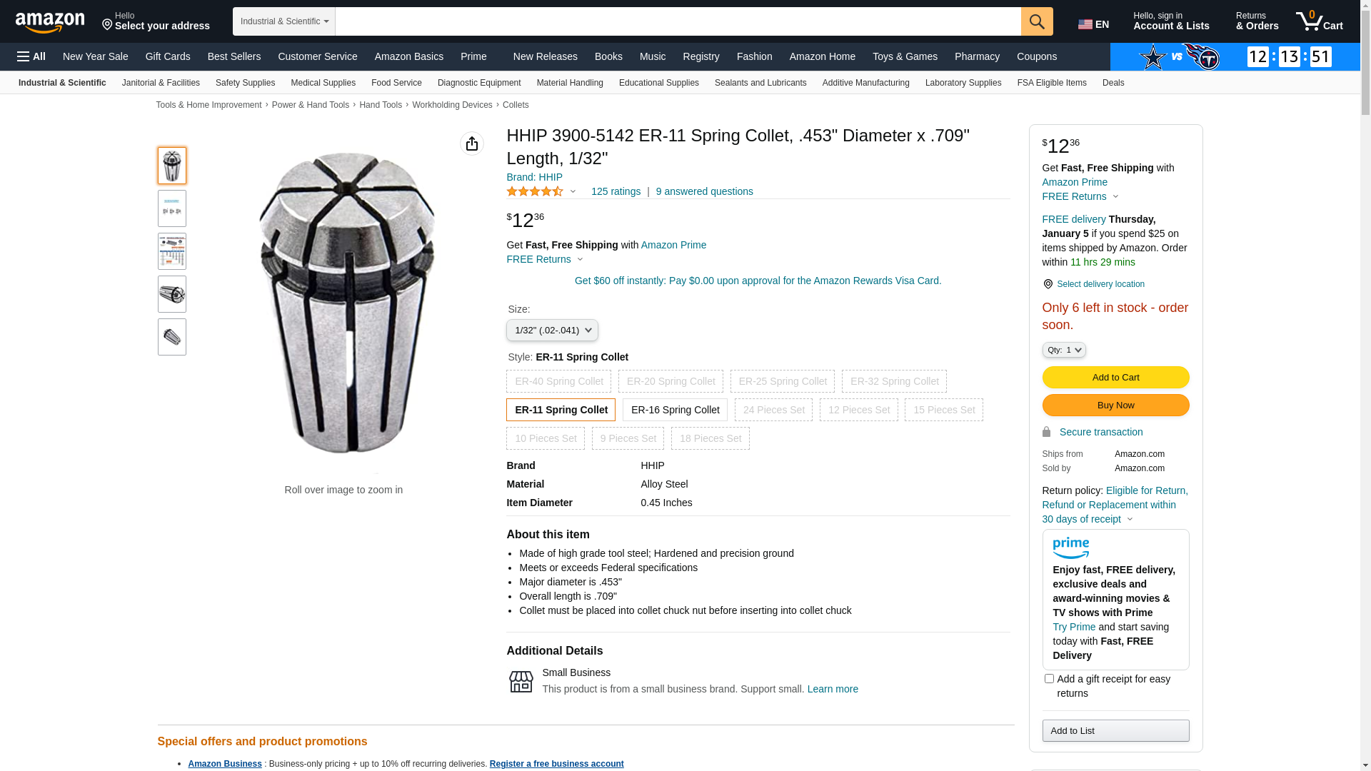 Hhip Er-11 1-32" Spring Collet 3900-5142 ZO-G2463616 - SIM Supply