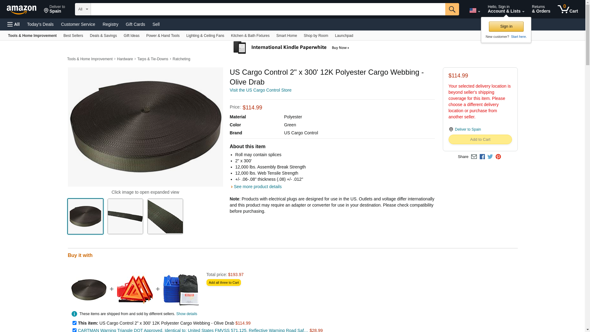 US Cargo Control 2" x 300' 12K Polyester Cargo Webbing - Olive Drab