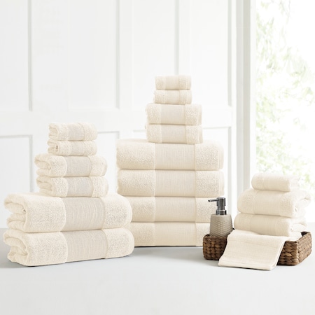 Amrapur Overseas 5ACT18PE-IVY-ST Air Cloud 100-Percent Combed Cotton Towel Set, 18-Piece, Ivory
