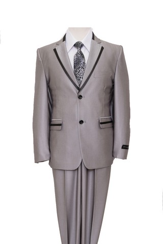 Mens Suits 2 Button Front Closure Flat Front Boys Suits Silver & Black Trim - 5