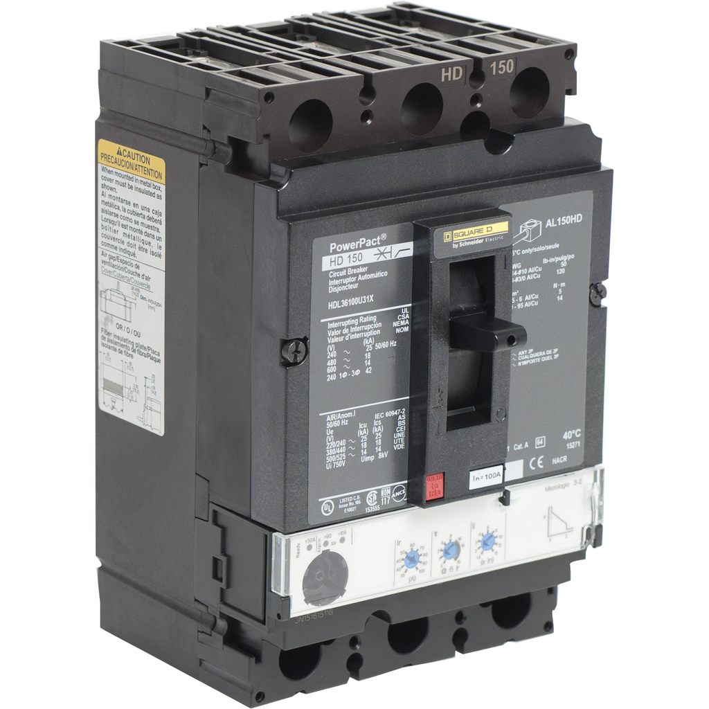 HDL36100U31X | Circuit breaker, PowerPact H, Micrologic 3.2, 100A, 3 pole, 600V, 14kA | Square D by Schneider Electric