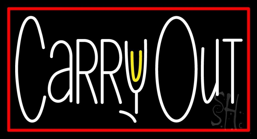 The Sign Store N105-3116 Carry Out with Red Border Neon Sign, 20 x 3 x 37 in.