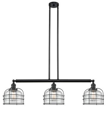INNOVATIONS LIGHTING 213-BK-G74-CE FRANKLIN RESTORATION LARGE BELL CAGE 3 LIGHT 41 1/2 INCH SEEDY GLASS ISLAND LIGHT,...