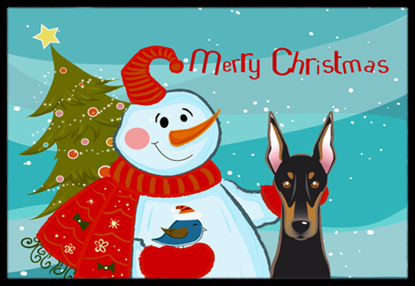 Caroline's Treasures BB1865JMAT Snowman with Doberman Doormat 24x36 Front Door Mat Indoor Outdoor Rugs for Entryway, Non Slip Washable Low Pile, 24H X 36W
