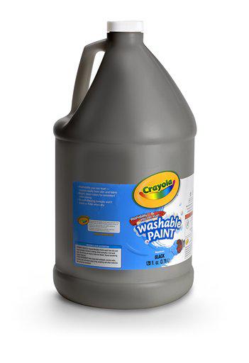 Washable Paint Black 1 gal - Vivid colors wash easily from skin and most clothing. - Makes painting worry free for teachers and parents. - Features a creamy consistency for smooth laydown and brush flow. - Assures consistent performance. - Non-separating and freeze-thaw stable. - Color(s): Black Chemical Compound: Water Based Capacity (Volume): 1 gal.