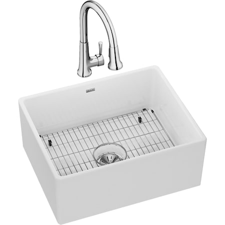 Elkay Fireclay 24-7/16" x 19-11/16" x 9-1/8" Single Bowl Farmhouse Sink Kit with Faucet White