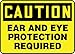 Sign, Caution Ear and Eye Protection Required, 7" X 10", Aluminum