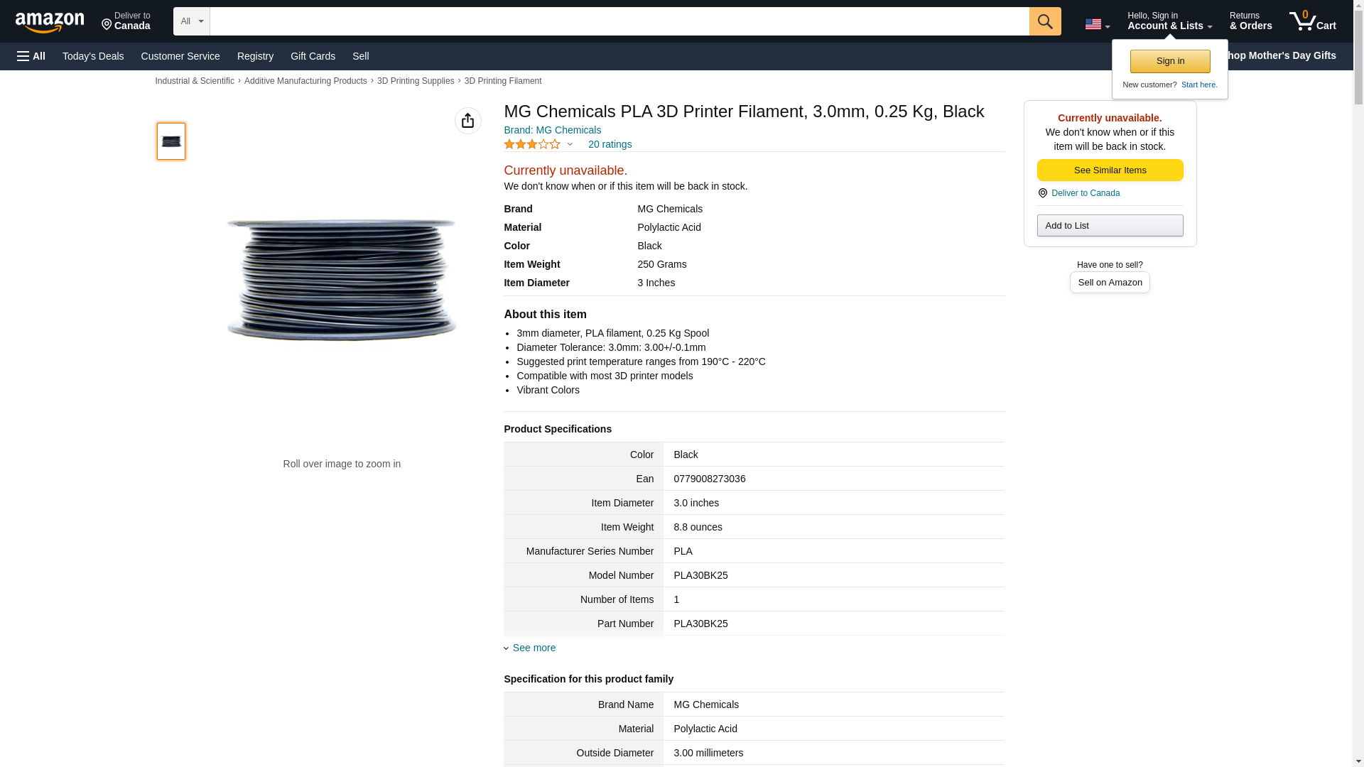 | Feature | 3mm diameter, PLA filament, 0.25 Kg Spool |