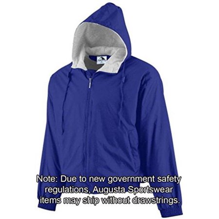 Our timeless MEN'S HOODED TAFFETA FLEECE LINED JACKET is the ultimate sporting layer. With an outer shell made of 100% nylon taffeta, this hooded jacket body, sleeves and hood are lined with a 75% polyester/13% rayon/12% cotton blend. Fleeced with grey heather, this hooded jacket has a center front zipper with inside storm flap, and a hood with drawcord and sliders (Boys' version has elastic in hood instead of drawcord). The set-in sleeves, reinforced slash front pockets with zippers, elastic cuffs and bottom band round out the features of this water-resistant, machine-washable, nylon taffeta jacket. Also available in Boys' sizes. <br /> <br />Style 3280.