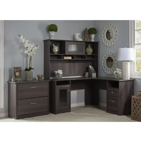 Bush Furniture Cabot L-Shaped Desk with Hutch and Lateral File Cabinet, Heather Gray (CAB005HRG) | Quill.com
