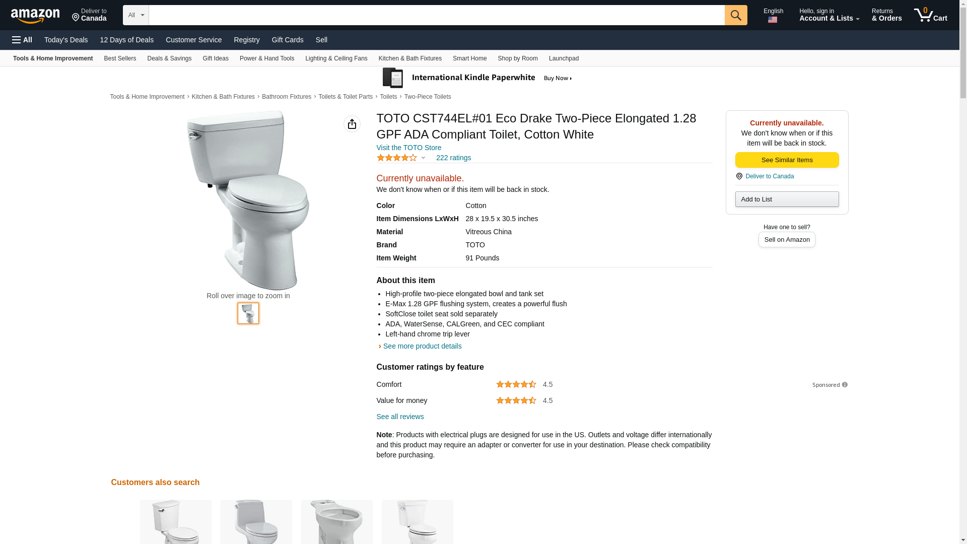 CST744EL#01 Finish: Cotton Pictured in Cotton Features: -Transitional style.-Contemporary, high profile design.-E-Max Flushing System (1.28GPF / 4.8 LPF).-ADA compliant.-Upgrade with a SoftClose seat, or a Washlet.-Fast Flush: Wide 3'' flush valve is 125pct larger than conventional 2'' flush valves.-Wider, 2 1/8'' computer designed, fully glazed trapway.-Large water surface.-Product compliance with ADA accessibility guidelines.