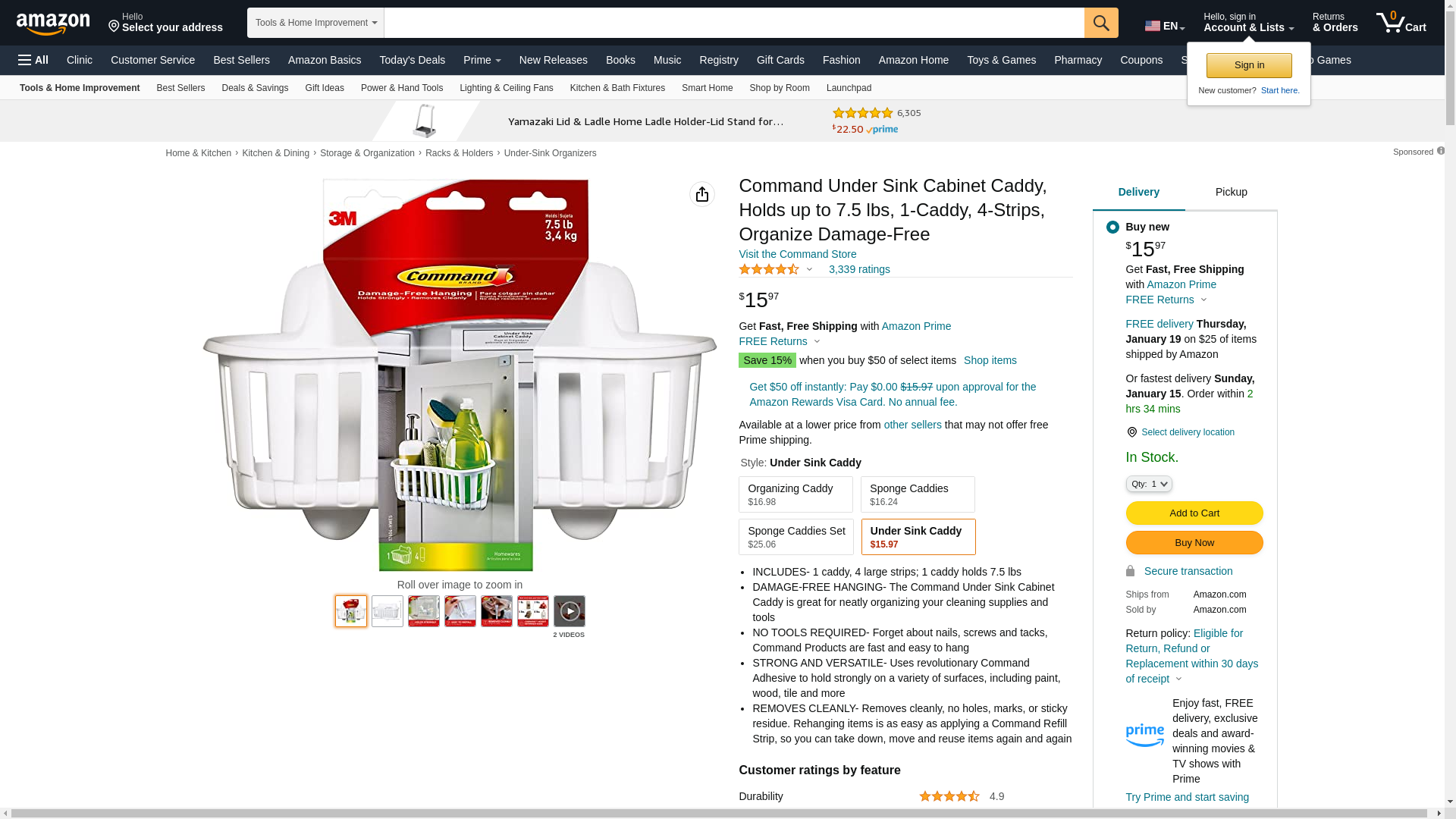 - DAMAGE-FREE HANGING- The Command Under Sink Cabinet Caddy is great for neatly organizing your cleaning supplies and tools