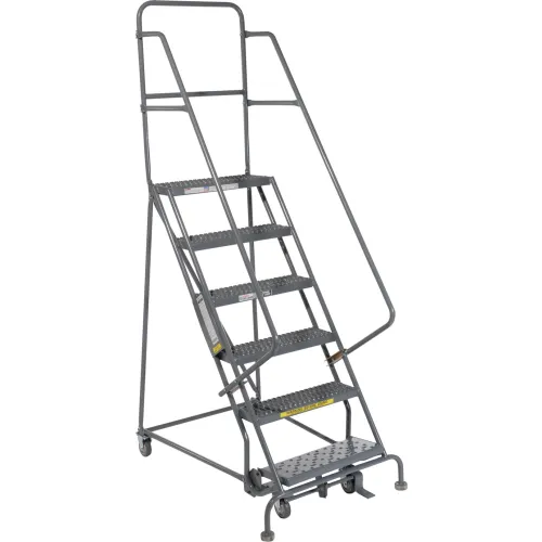 Tri-Arc KDSR106242-D2 6-Step 20" Deep Top Steel Rolling Industrial & Warehouse Ladder with Handrails, 24" Wide Grip Strut Tread