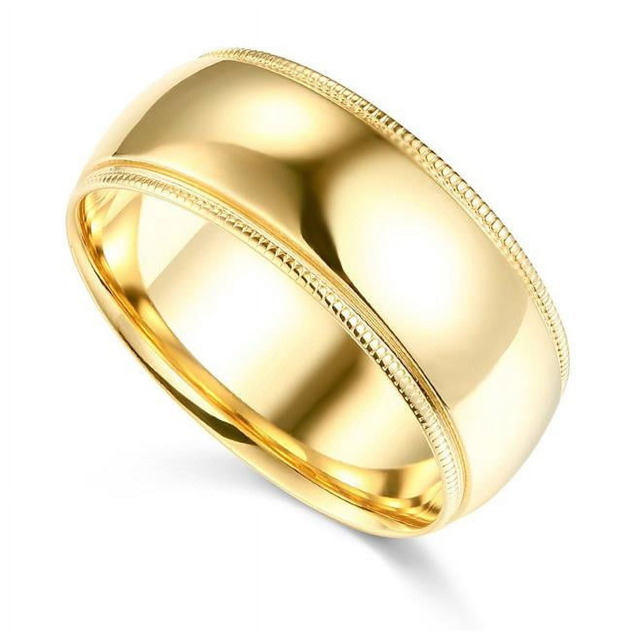 Precious Stars BMC-080-6 8 mm 14K Yellow Gold Comfort-fit Milgrain & Polished Wedding Band - Size 6