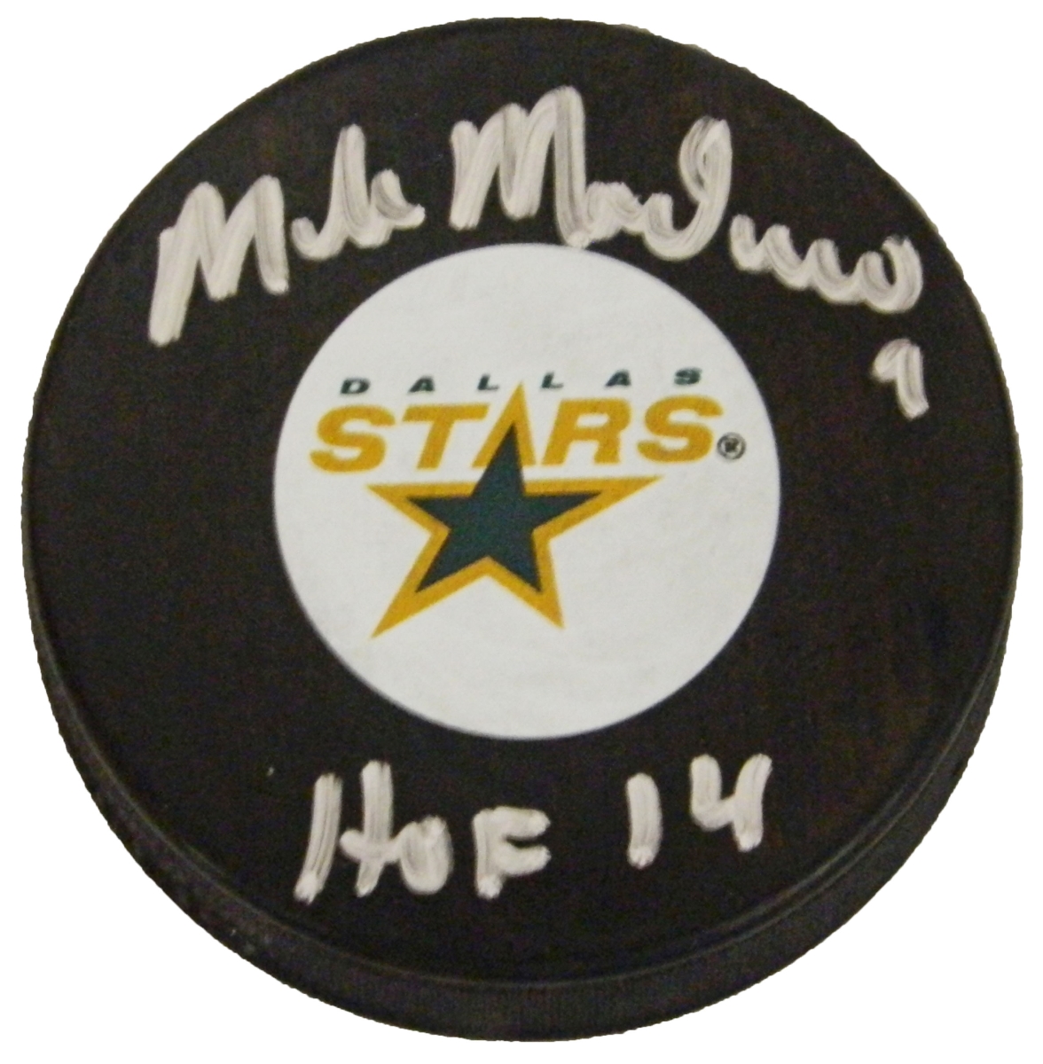 Schwartz Sports Memorabilia MODPUC402 Mike Modano Signed Dallas Stars NHL Logo Hockey Puck with HOF 14