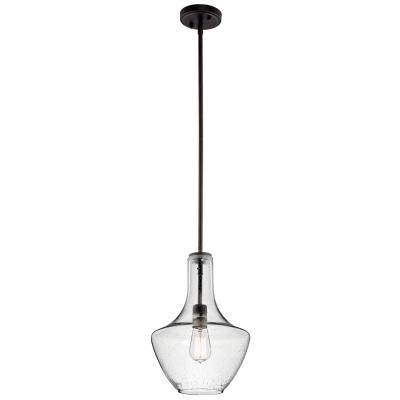 Kichler Everly 15.25" Kitchen Bell Pendant in Olde Bronze®, 1-Light Clear Seeded Glass Pendant Light, (15.25" H x 10.5" W), 42141OZCS