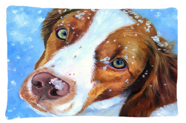 Caroline's Treasures 7348PILLOWCASE Snow Baby Brittany Spaniel Fabric Standard Pillowcase Lightweight Super Soft Easy Care Decorative Artwork Pillowcase, Standard