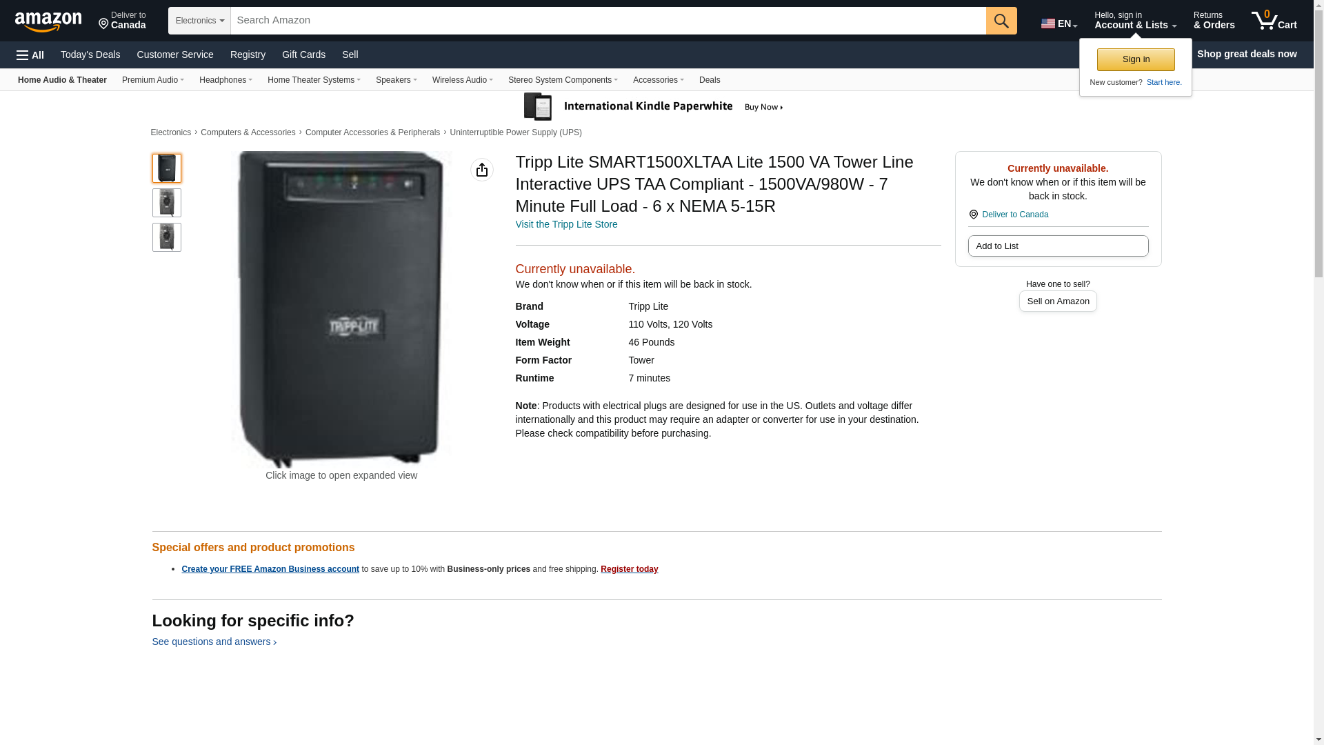 - Tripp Lite Smart1500xltaa 1500 Va Tower Line Interactive Ups Taa Compliant - 1500va/980w - 7 Minute Full Load - 6 X Nema 5-15r